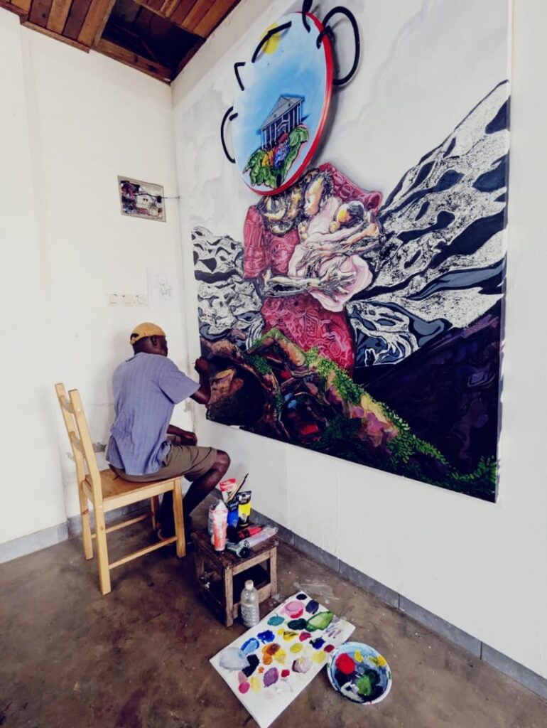 Bandjoun, Cameroun – Novembre 2025, le Master’art Studio asbl, plateforme de création visuelle basée à Lubumbashi et coordonnée par Olivier Fall Masey, a franchi une étape significative dans son rayonnement international. Dans le cadre d’une résidence croisée organisée à Bandjoun Station, sous le parrainage de l’artiste de renommée mondiale Barthélemy Toguo, Olivier Fall Masey a présenté son œuvre monumentale Magni (mère de jumeaux), réalisée en technique mixte, et mesurant 200×180 cm.