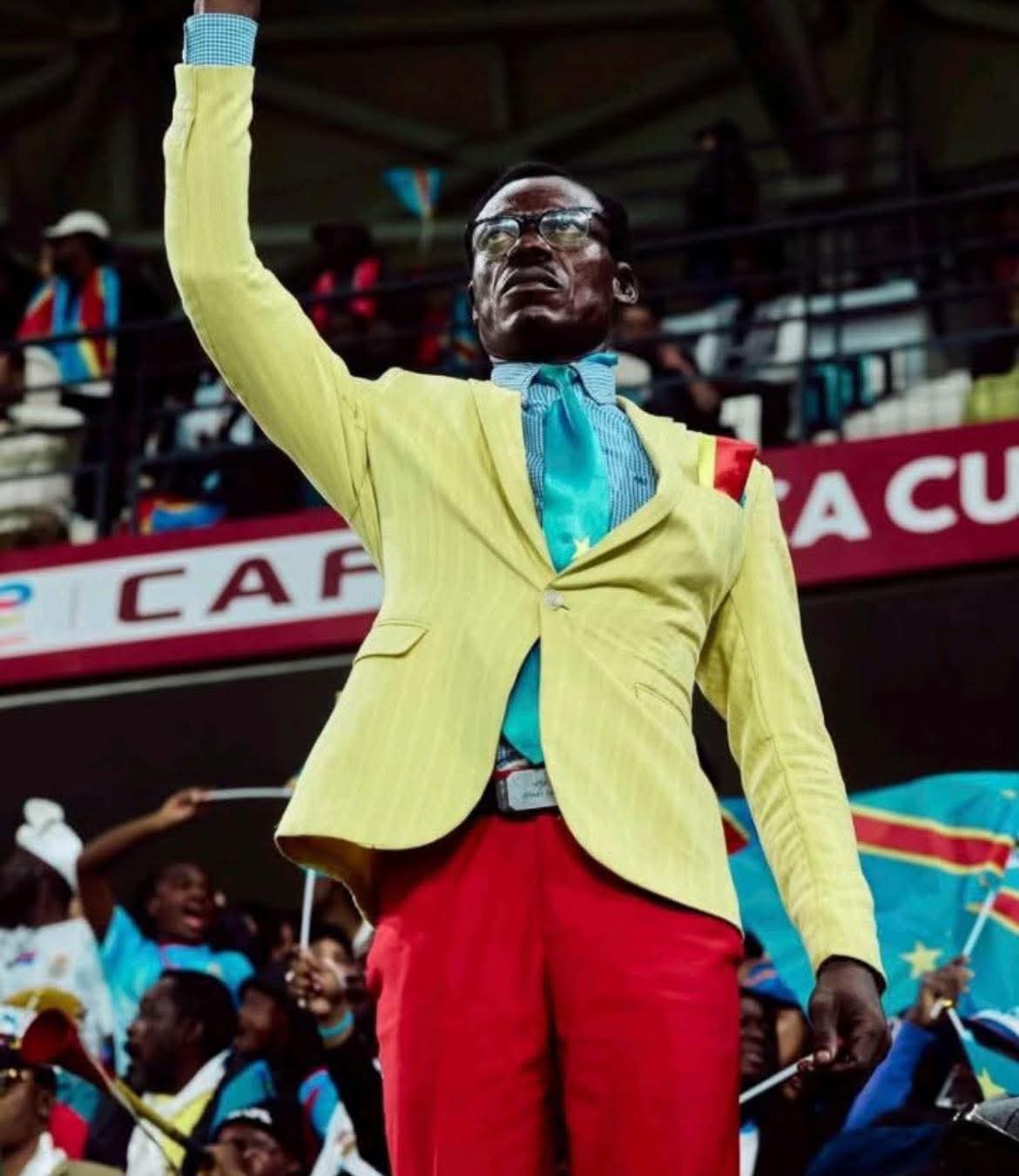 Âgé de 52 ans, Michel Kuka n’est pas un phénomène nouveau. Animateur officiel des Léopards et supporter historique de l’AS V. Club, il cultive cette posture depuis 2013. Vêtu d’un costume, portant des lunettes caractéristiques, il incarne une présence à la fois spectaculaire et solennelle. Pendant 90 minutes, parfois 120, il résiste à l’effervescence générale, les yeux fixés sur le terrain, dans un concentré de calme et de détermination. Cette discipline, répétée match après match, dépasse le simple fait de supporter pour s’apparenter à une performance artistique rigoureuse.